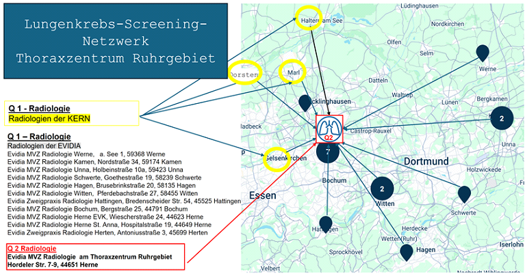 An oben aufgeführten Standorten besteht die Möglichkeit, Patientinnen und Patienten zum Lungenkrebs-Screening im Rahmen der strukturierten Früherkennung zuzuweisen.